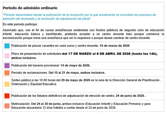 | CALENDARIO ADMISIÓN - MATRÍCULA ESO Y BACHILLERATO CURSO-2026/2027 |